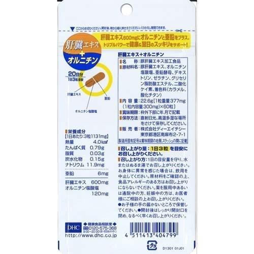 Amazon Dhc 肝臓エキス オルニチン 20日分 60粒 22 6g Dhc ディー エイチ シー オルニチン