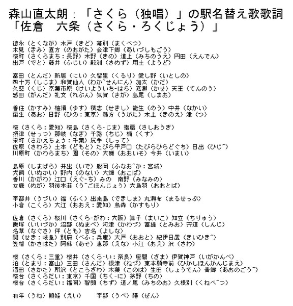 森山直太朗 さくら 独唱 の駅名替え歌歌詞 栃木那須 初代 さんのイラスト ニコニコ静画 イラスト