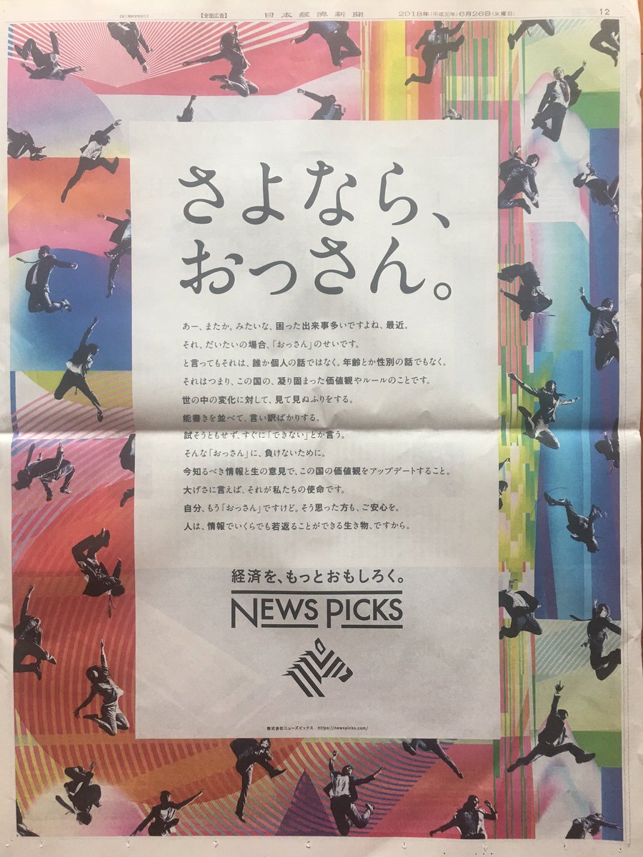 おじさんメディアnewspicks 日本経済新聞に さよなら おっさん 一面広告で炎上事件 インターネット事件簿
