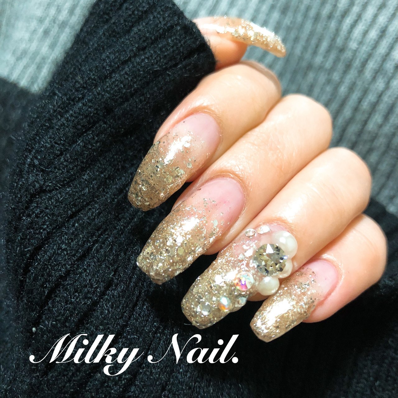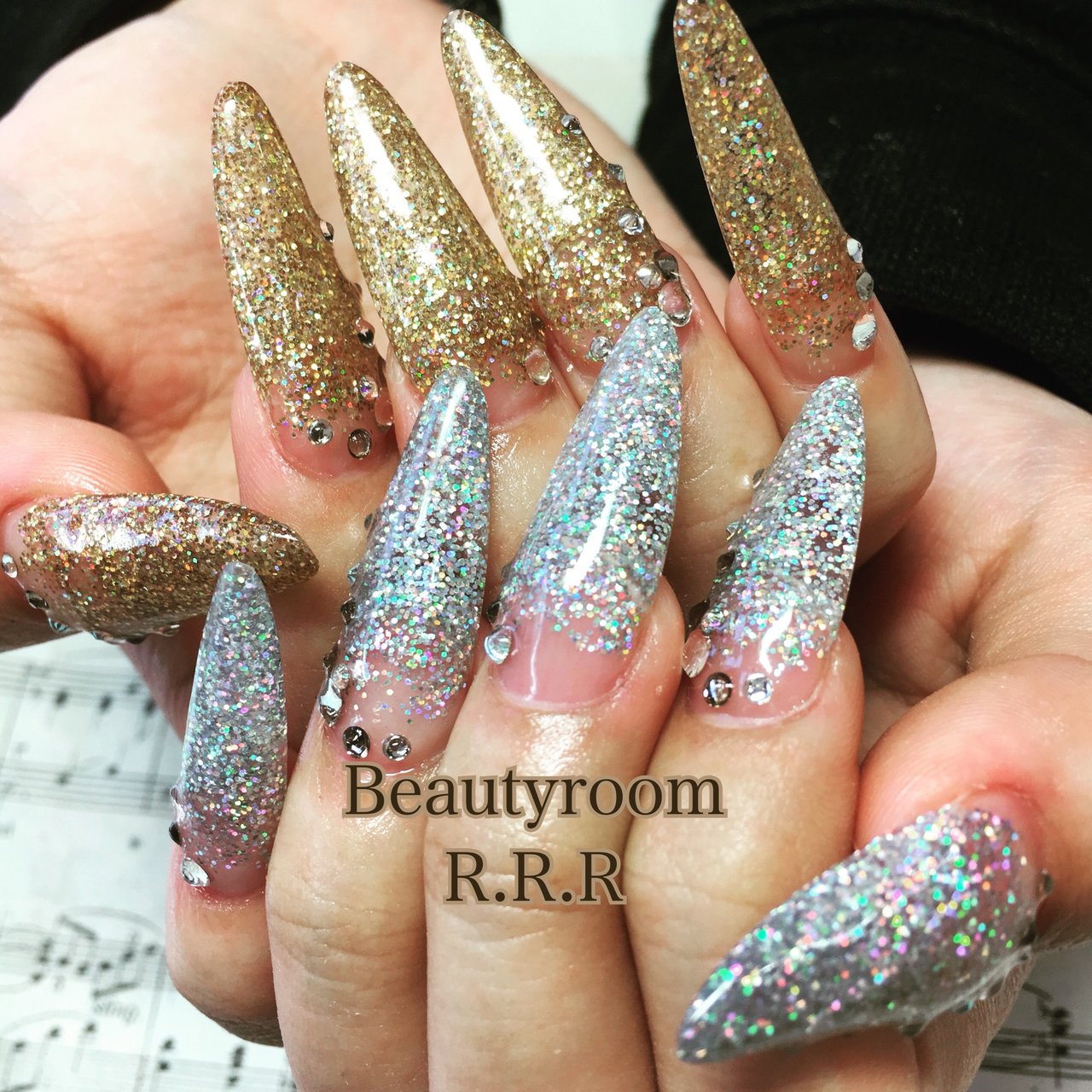 ハンド ラメ スーパーロング ゴールド シルバー Beautyroom R R Rのネイルデザイン No 3002404 ネイルブック