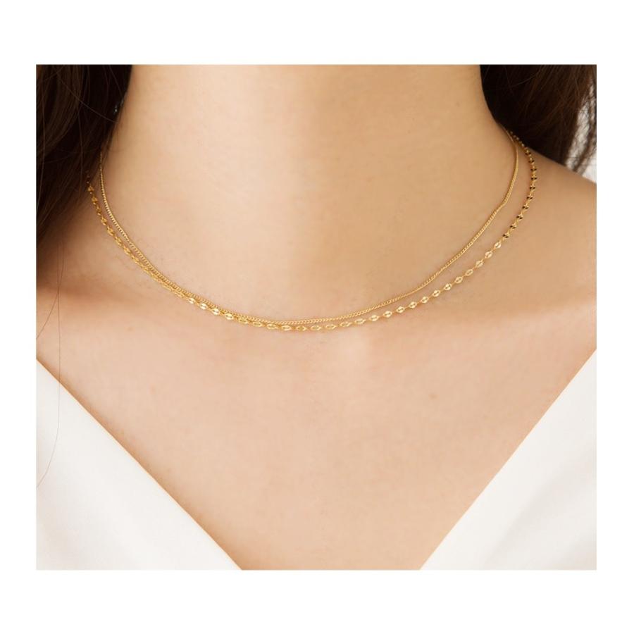 2color ネックレス 重ね付け ゴールド シルバー コイン チェーン Eed