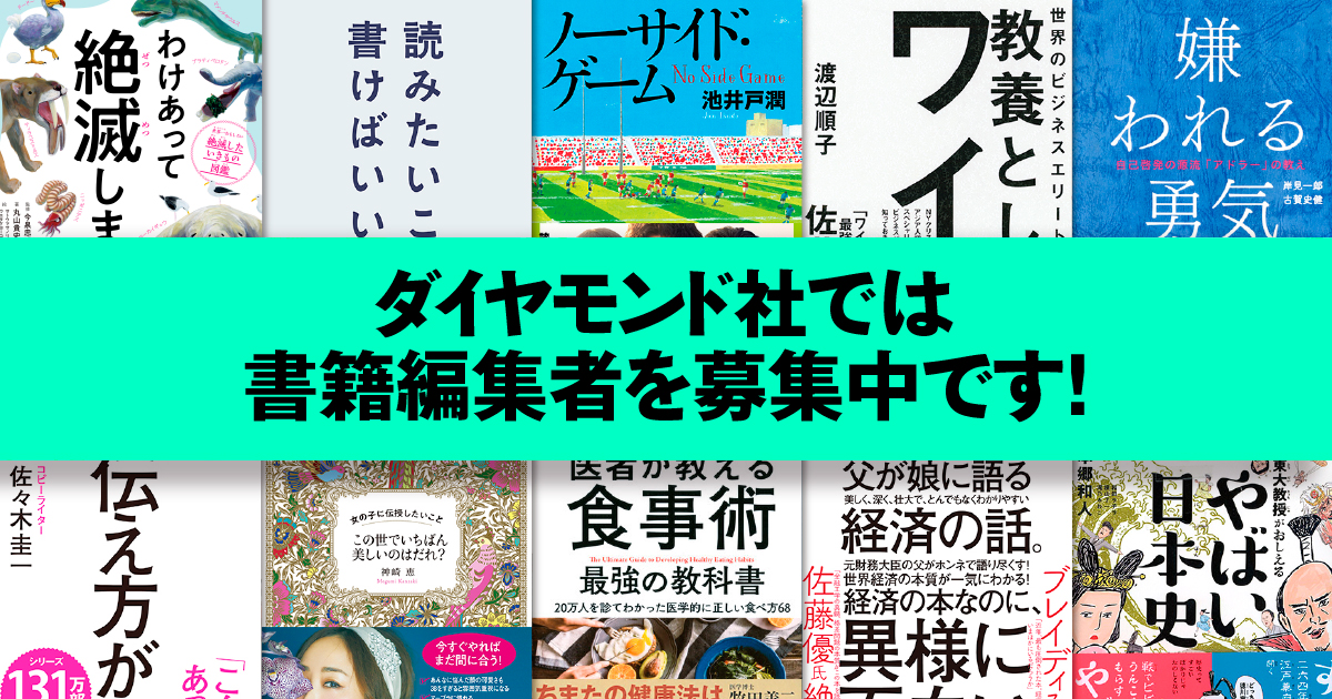 ダイヤモンド社では コンテンツの可能性を徹底的に追求する書籍編集者を募集中です 書籍編集者募集 ダイヤモンド オンライン ニュートピ Twitterで話題のニュースをお届け