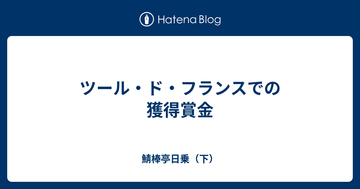 ツール ド フランスでの獲得賞金 鯖棒亭日乗 下