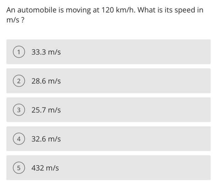 Solved An Automobile Is Moving At 120 Km H What Is Its S Chegg Com