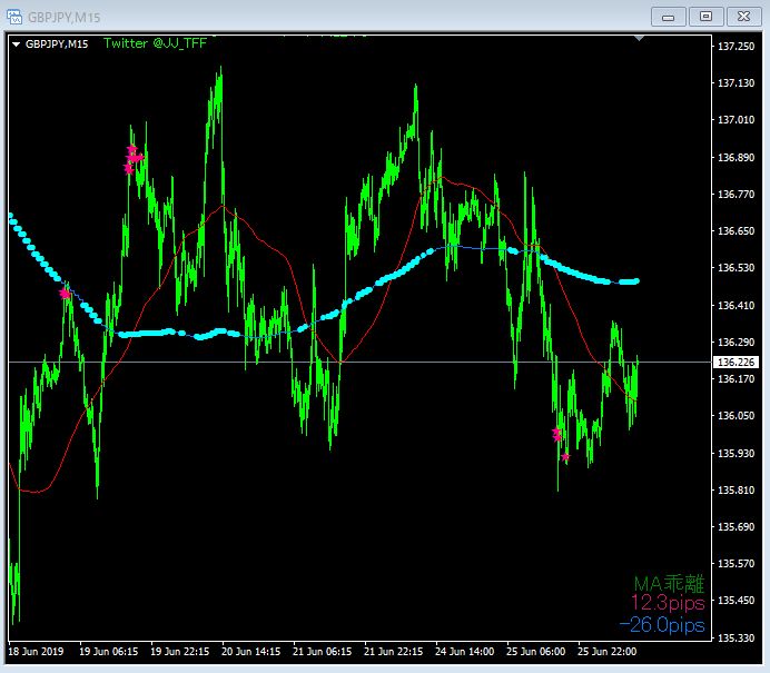 移動平均線の乖離 サイン表示 Pips表示 Mt4インジケーター 逆張りや決済にも Torekuma Blog