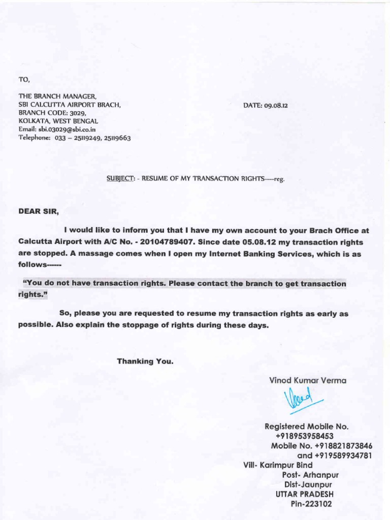 Letter For Resume Transaction Rights Banking Technology