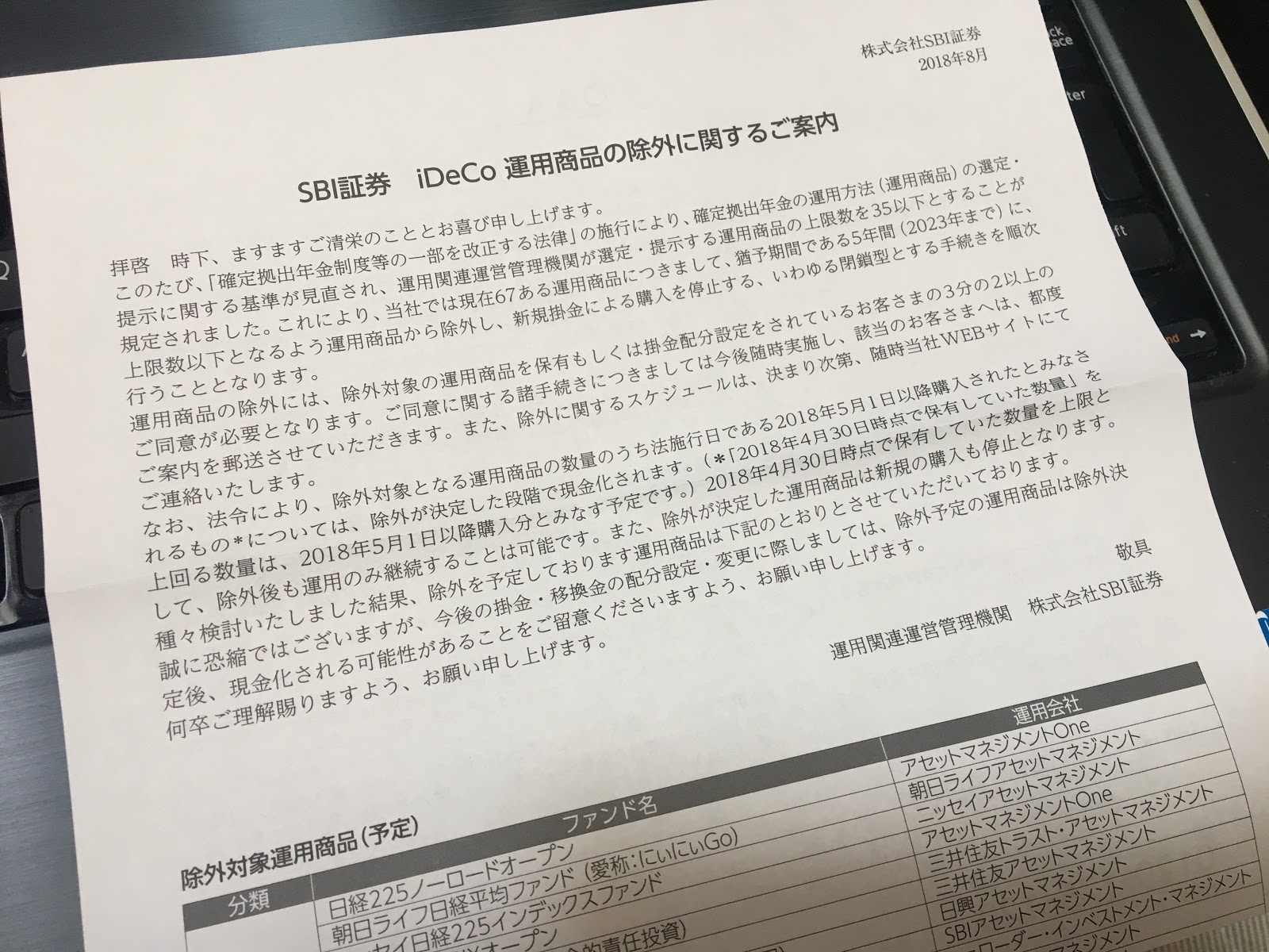 Sbi証券のideco 取り扱いファンドが減少 買い替え候補の商品をまとめました