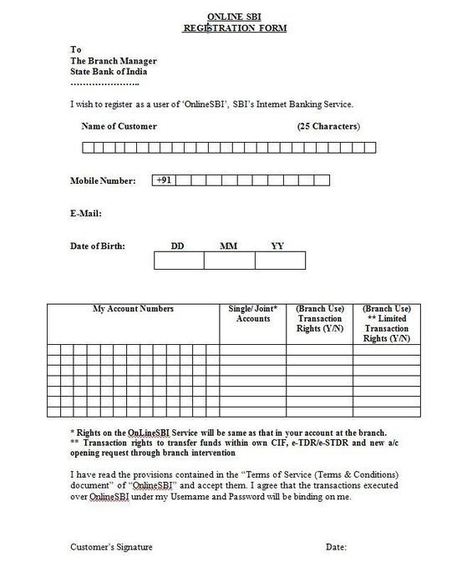 Registration Form State Bank Of India